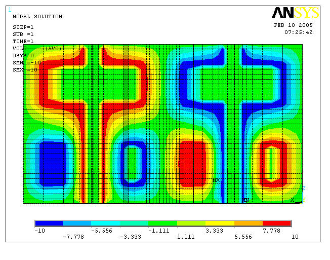 Example of electrostatic analysis: potential distribution in micro-machined qudrupole mass-filter.